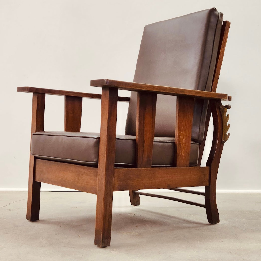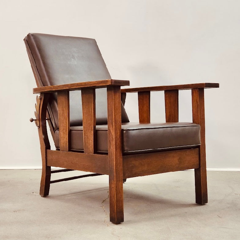 ARTS AND CRAFTS OAK MORRIS RECLINING ACCENT CHAIR