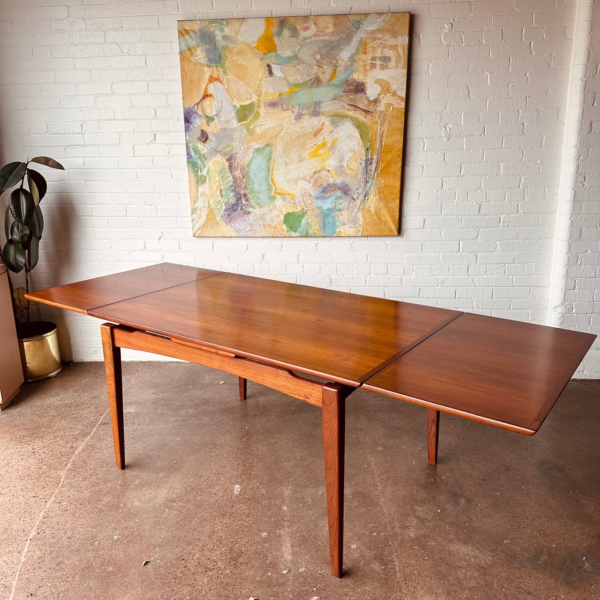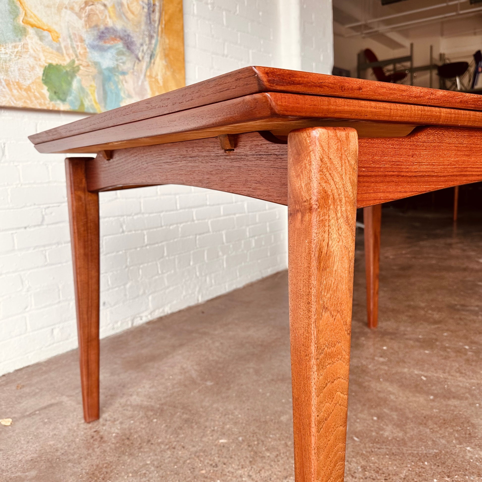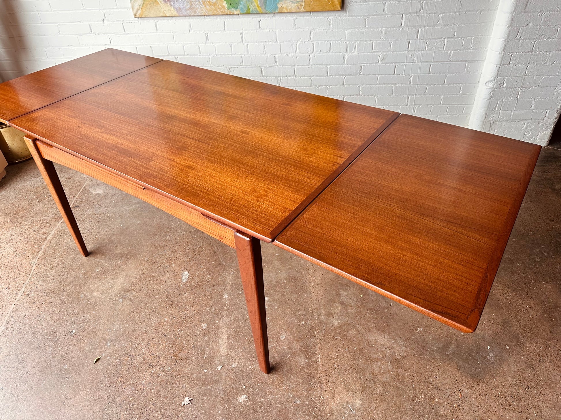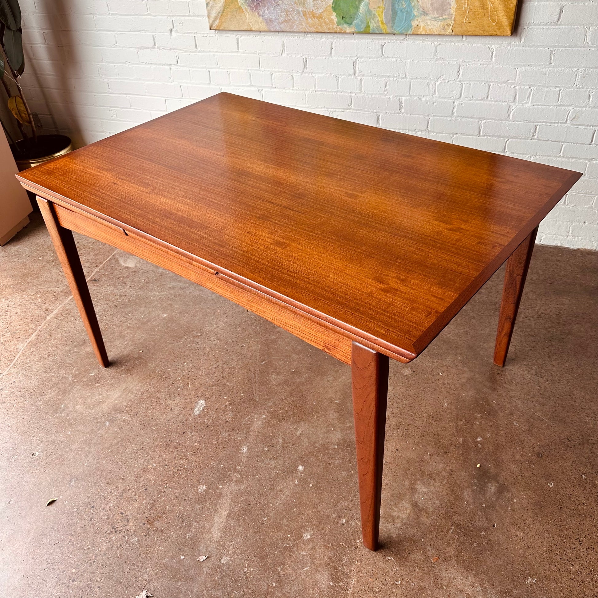 DANISH TEAK BEVELED EDGE DINING TABLE WITH DRAW LEAVES