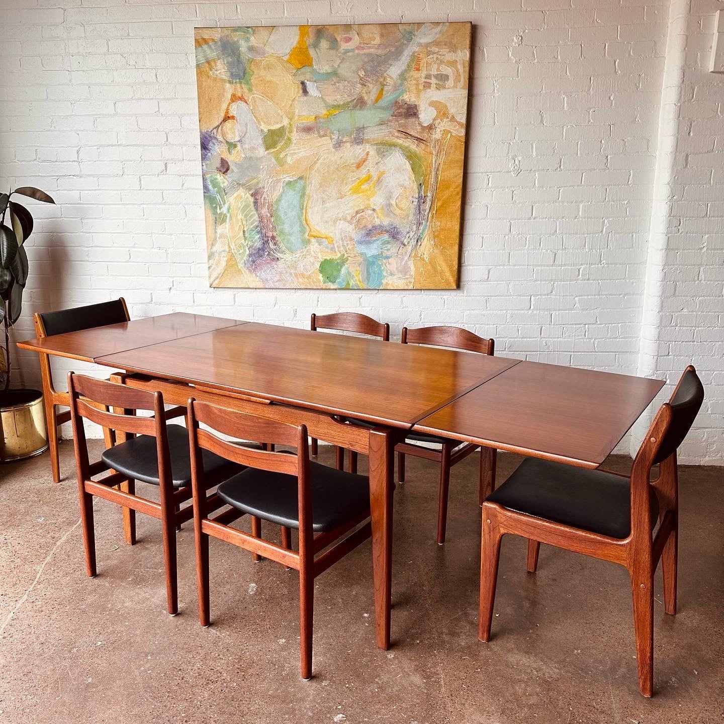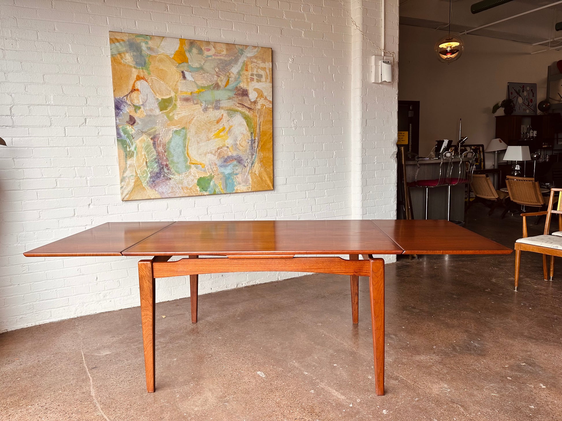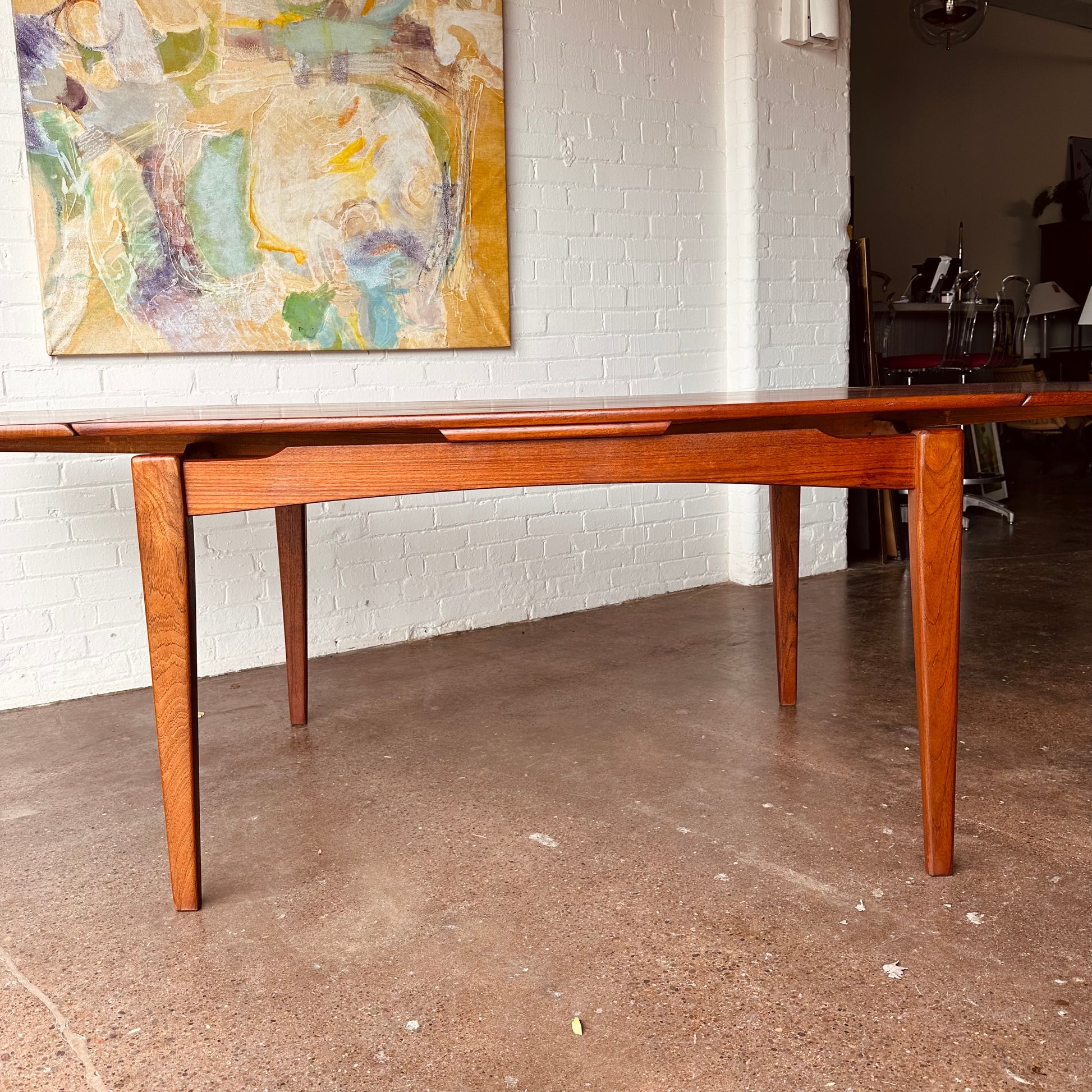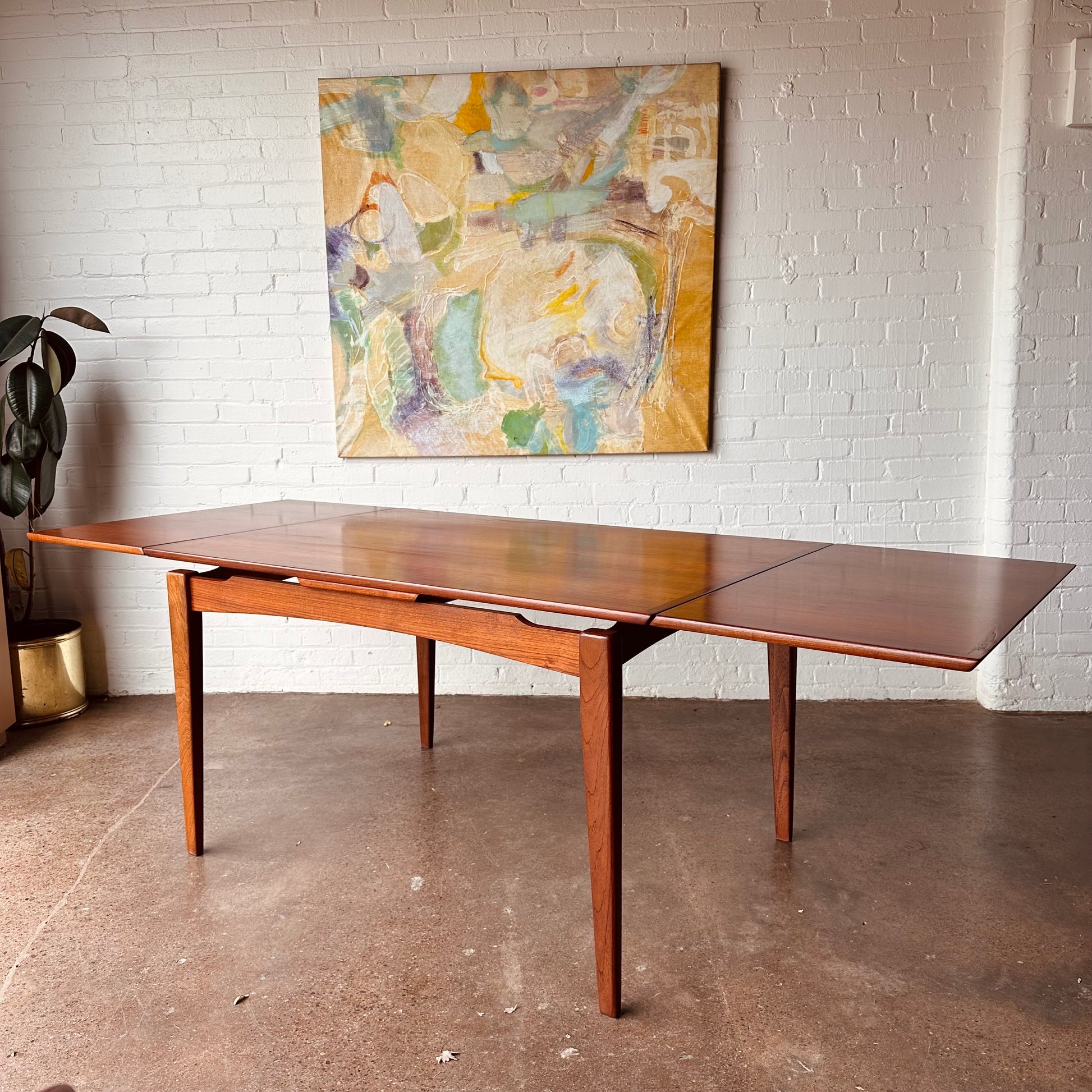 DANISH TEAK BEVELED EDGE DINING TABLE WITH DRAW LEAVES