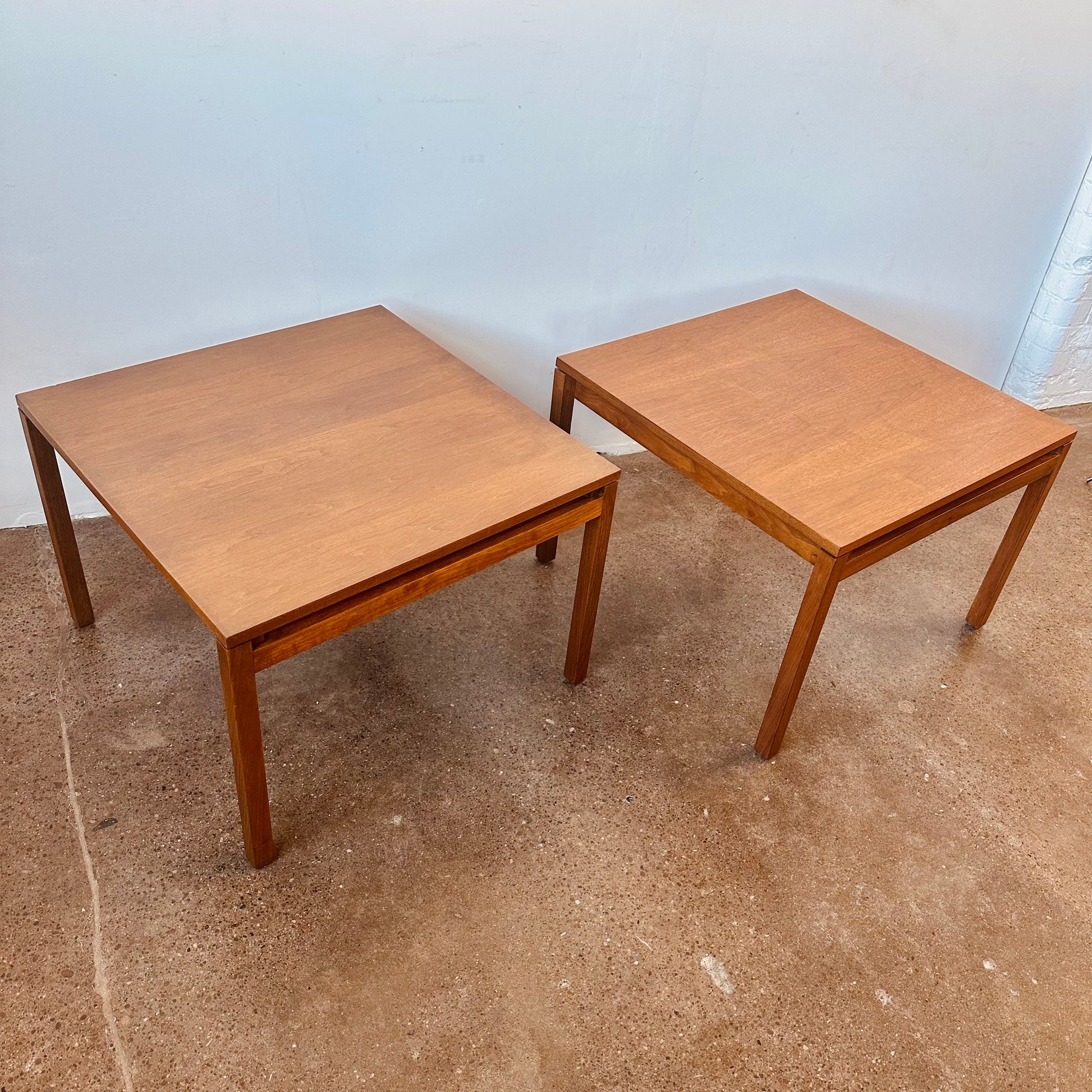 Early production walnut end tables table designed by Lewis Butler for Knoll circa 1960s. Simple streamlined design with classic shadow box frame and floating top. We also have available a coordinating walnut coffee table from this series by Knoll. See here