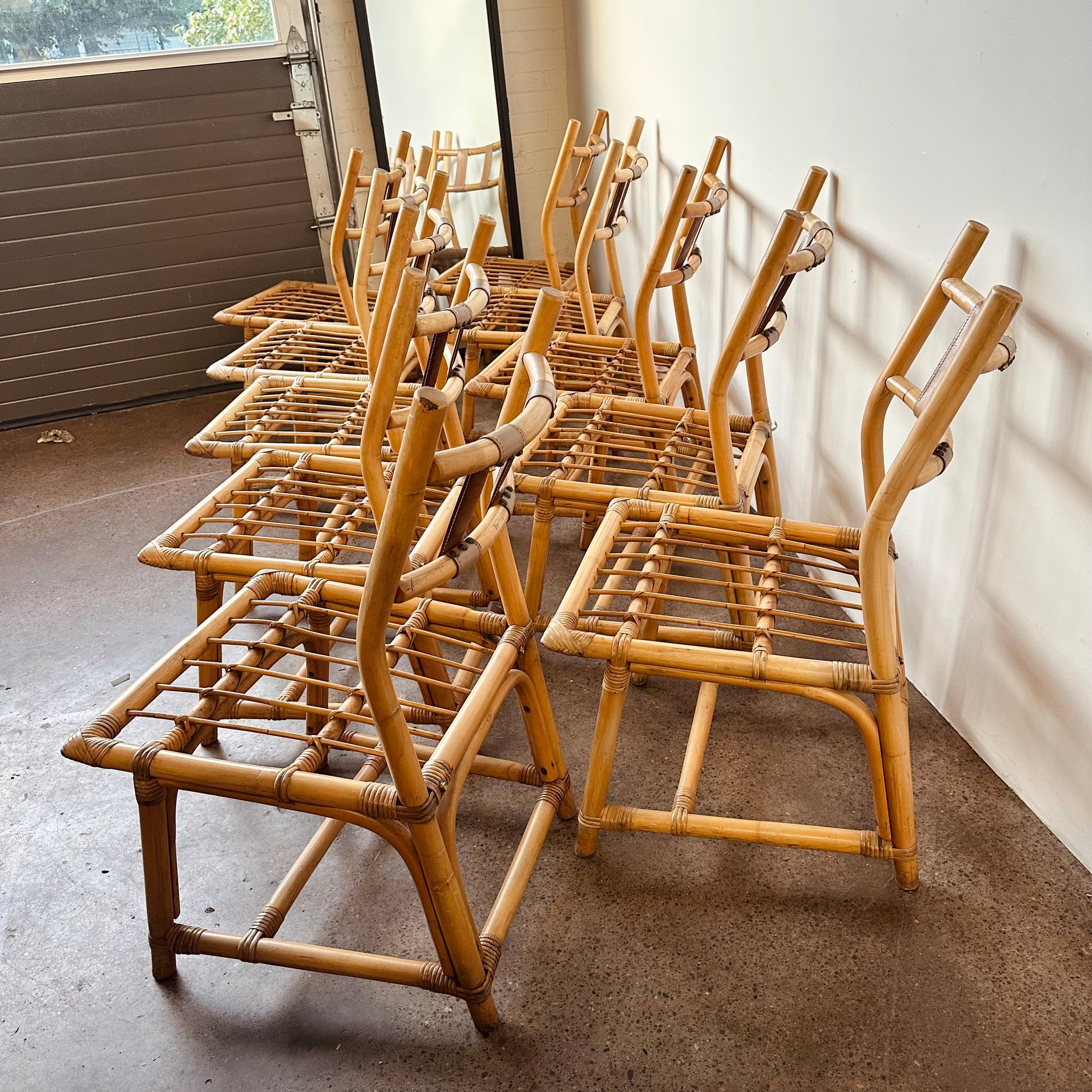 FRANKL STYLE BAMBOO RATTAN DINING CHAIRS - SET OF 10