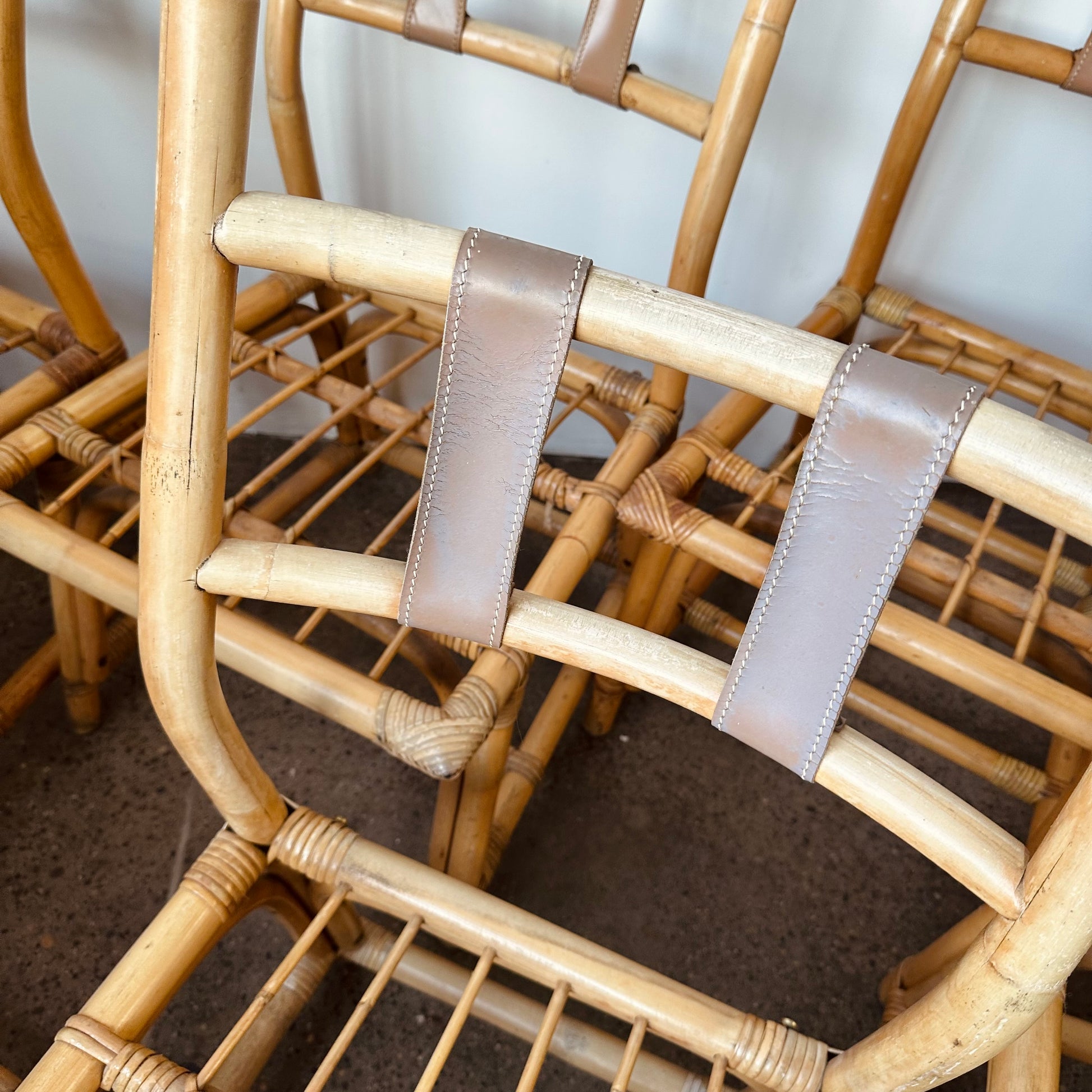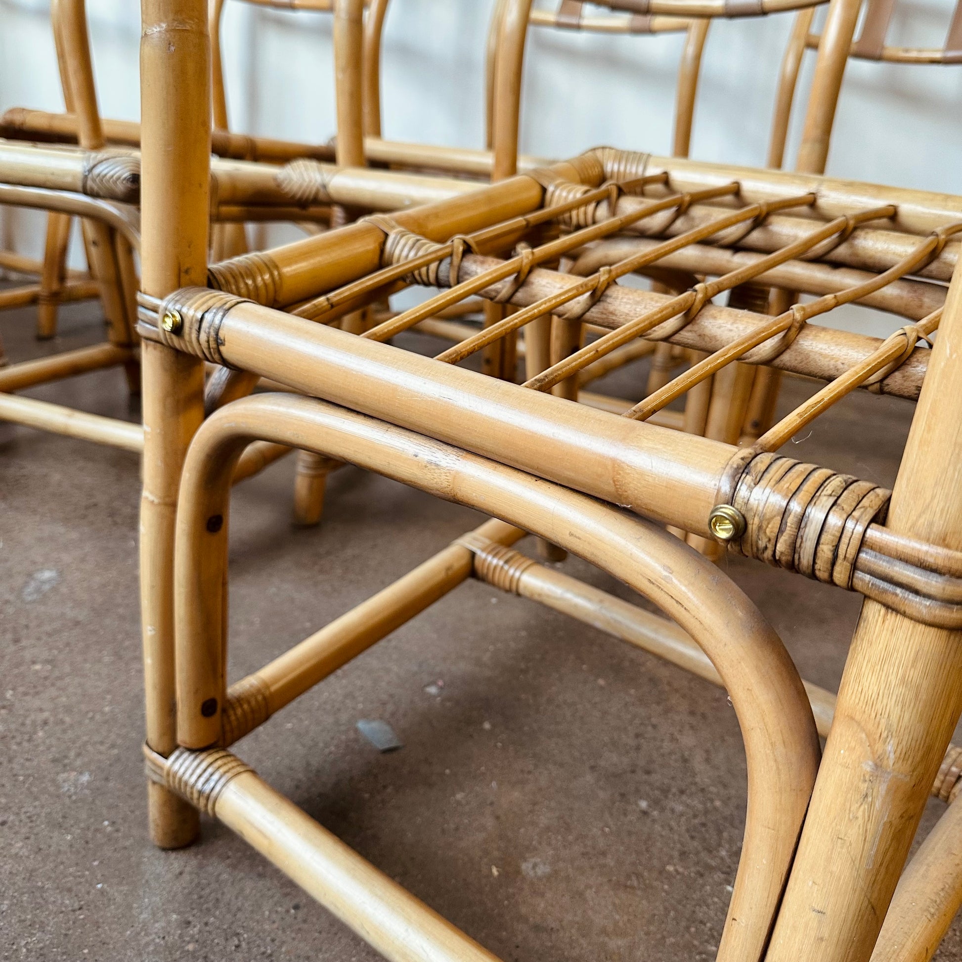 Excellent vintage condition with age appropriate wear. A few breaks or unraveled areas of bamboo but not detrimental to the structure of the chairs.