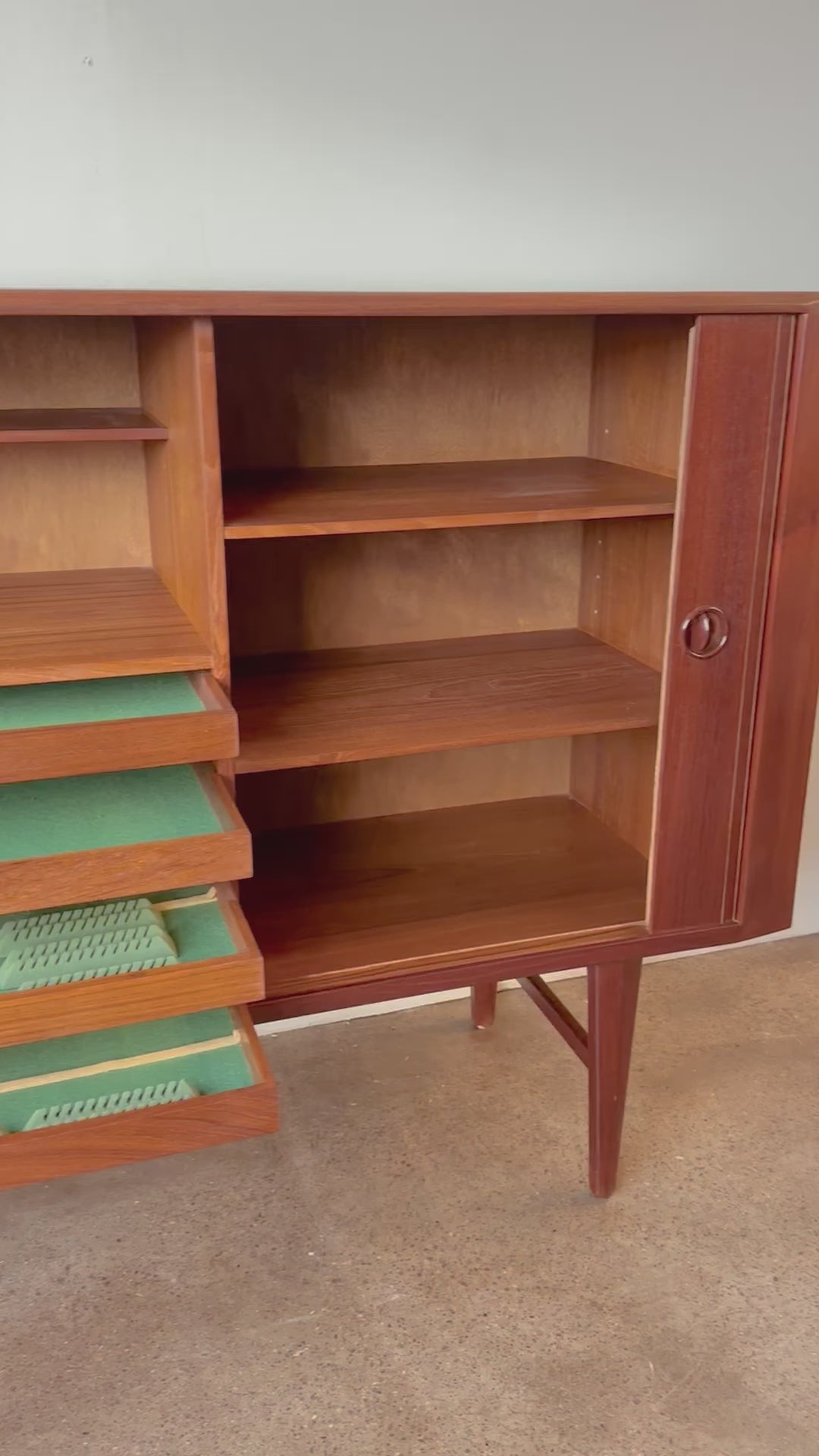 HARRY ØSTERGAARD FOR RANDERS MÖBELFABRIK DENMARK TEAK TAMBOUR HIGHBOARD