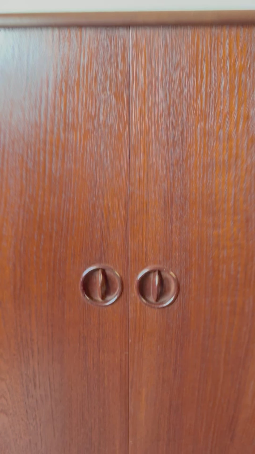 Monumental early Harry Ostergaard for Randers Möbelfabrik of Denmark teak highboard with tambour doors. 🇩🇰 Beautiful and impressive teak sideboard by Harry Ostergaard for Randers Möbelfabrik, Denmark. This large 1960s tall sideboard credenza features stunning wood grain, unique details such as the carved circular handles, and plenty of adjustable shelves and storage space including various felt lined drawers.