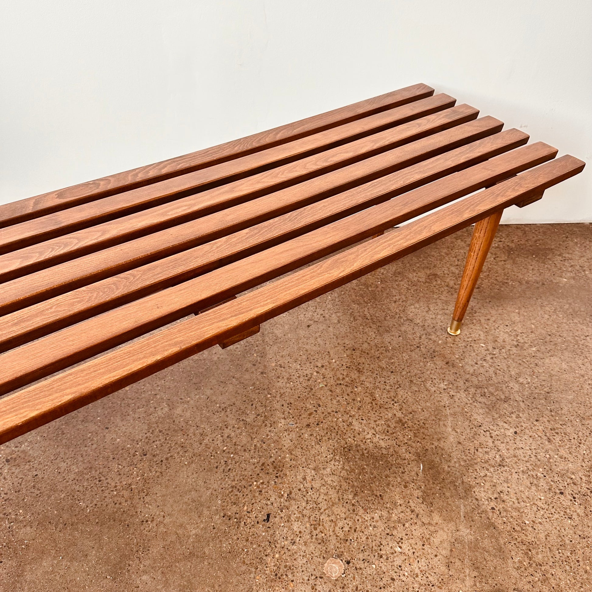 Mid-century slat wood coffee table or bench in the style of George Nelson.