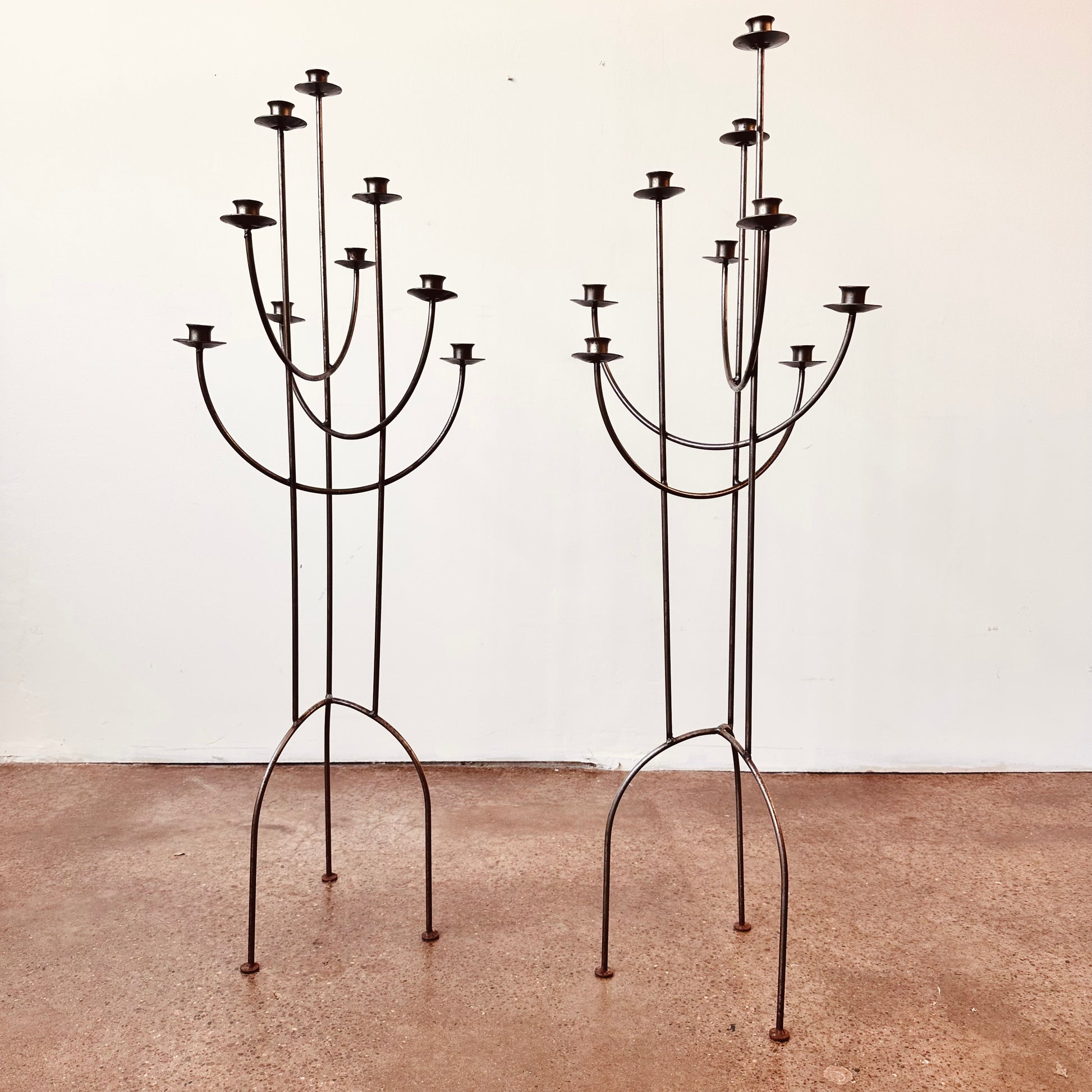 PAIR OF BRUTALIST 8 CANDLE HOLDER FLOOR CANDELABRA