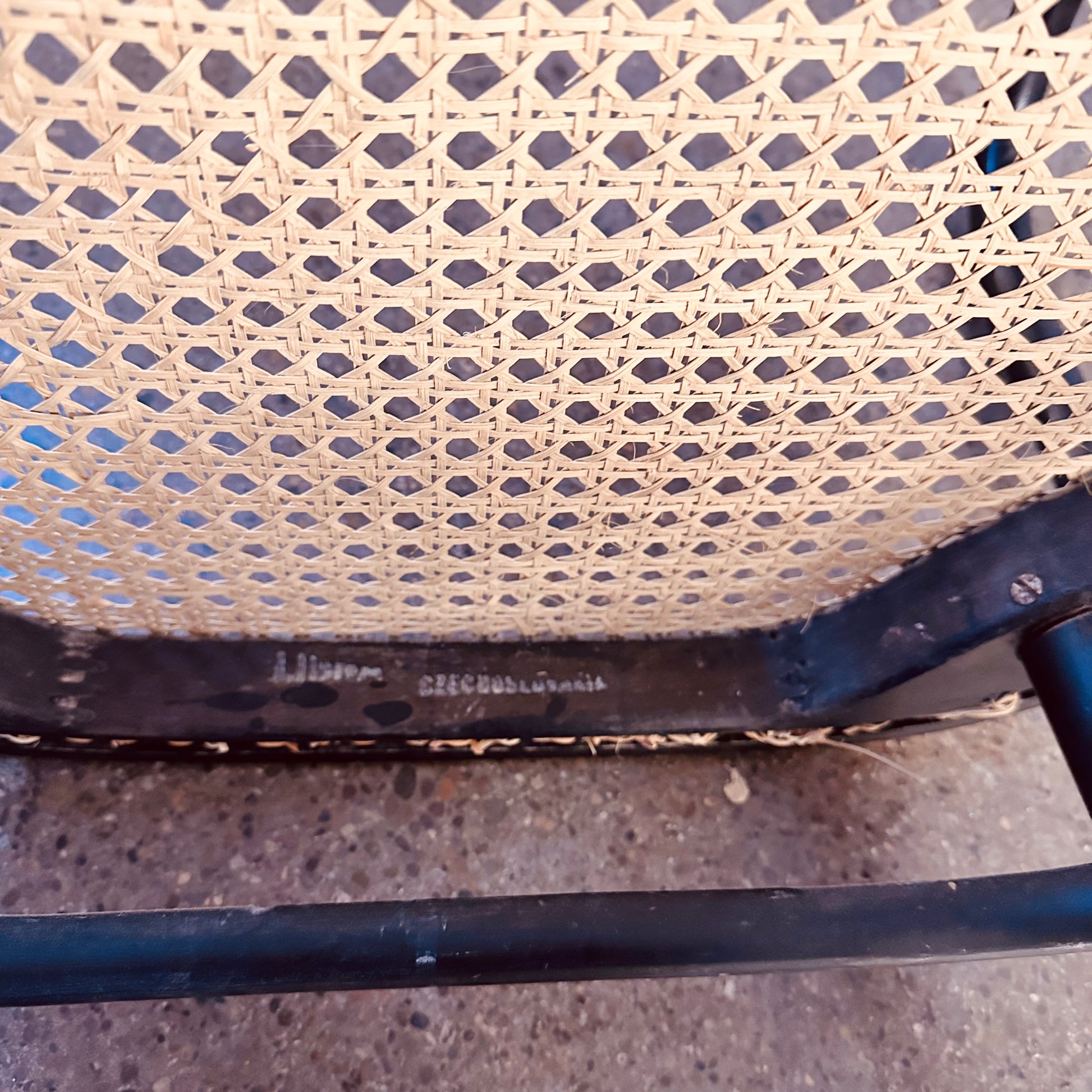 Very good vintage condition consistent with age and use. Caning is intact with no major tears or holes, slightly brittle. Patina and age is apparent throughout. Structurally sound.
