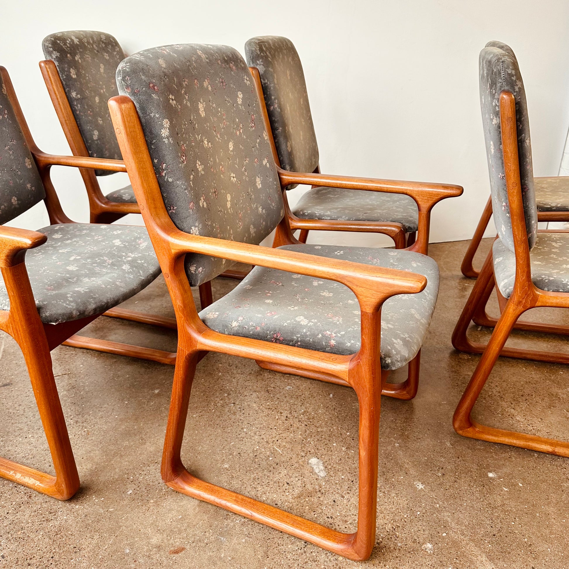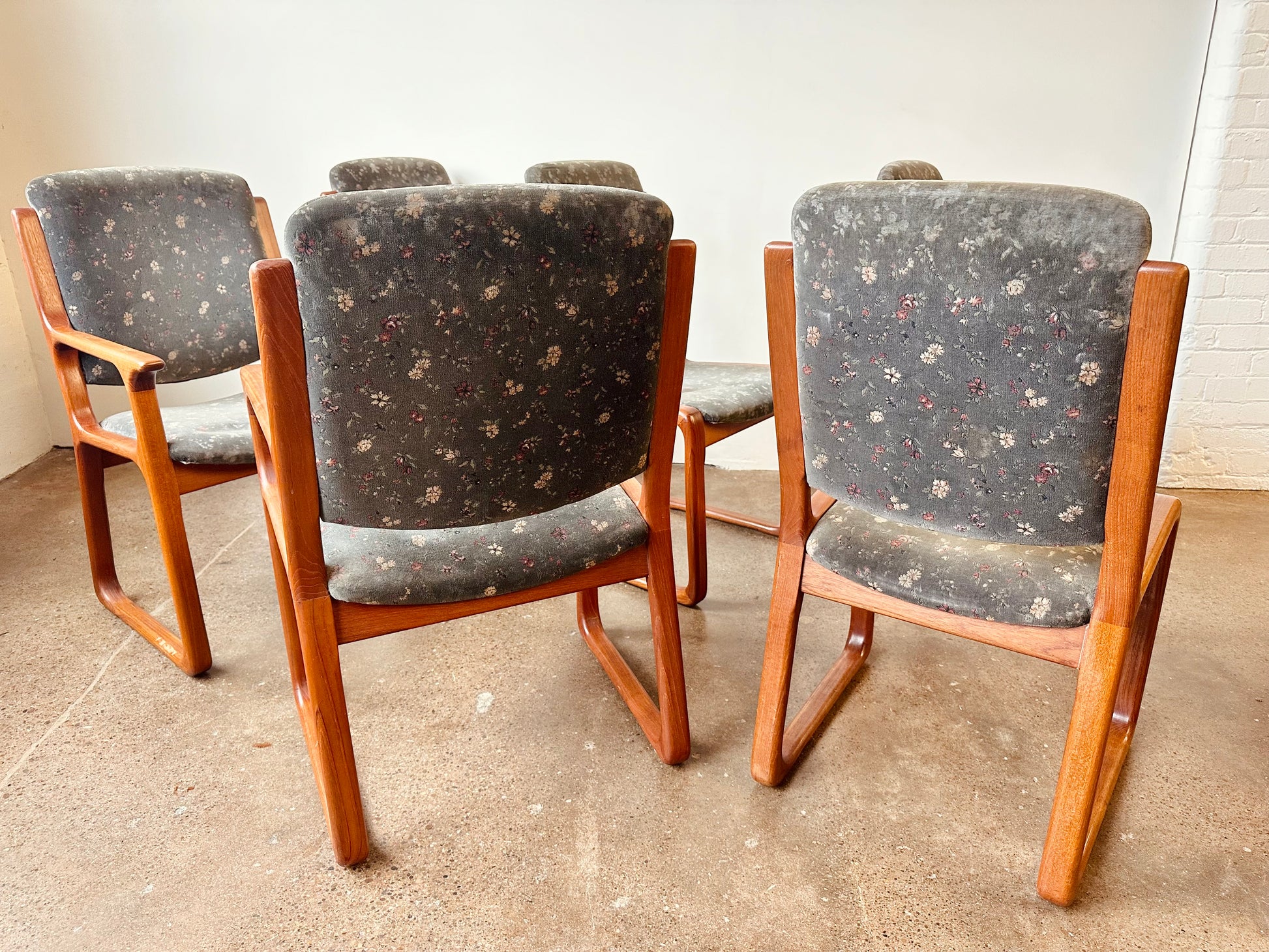 UPHOLSTERED DANISH TEAK DINING CHAIRS - SET OF 6