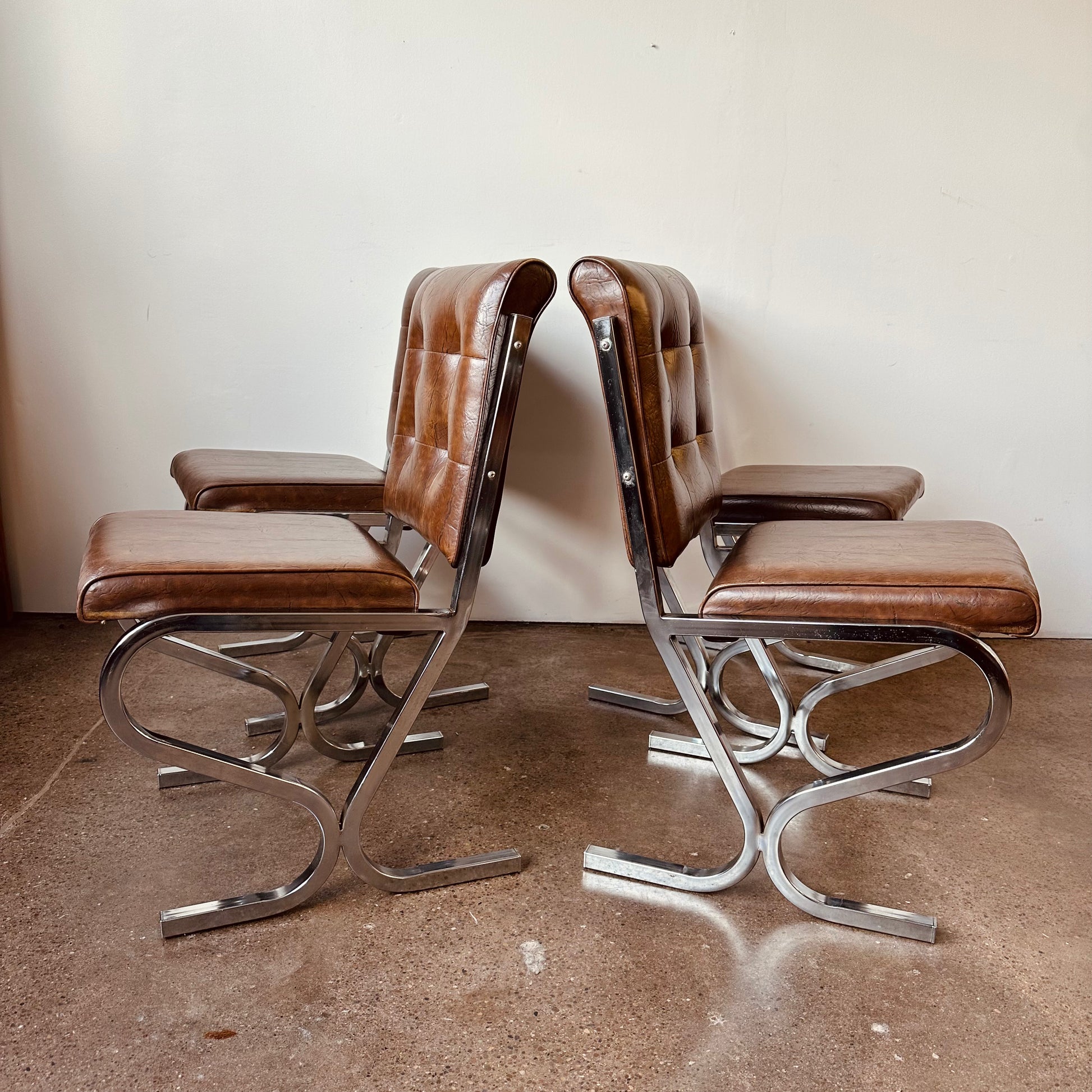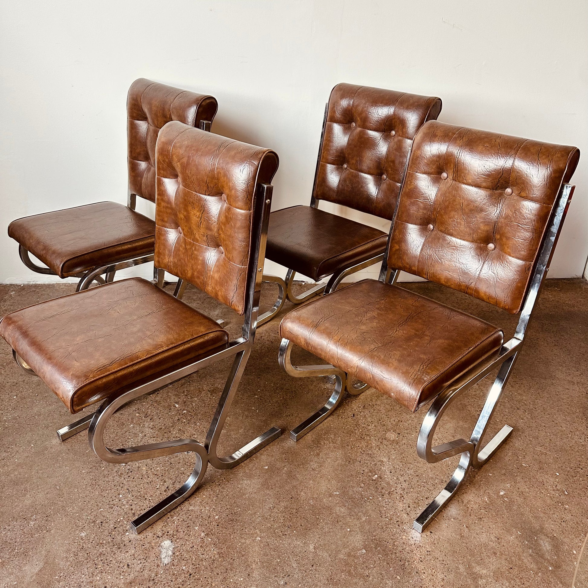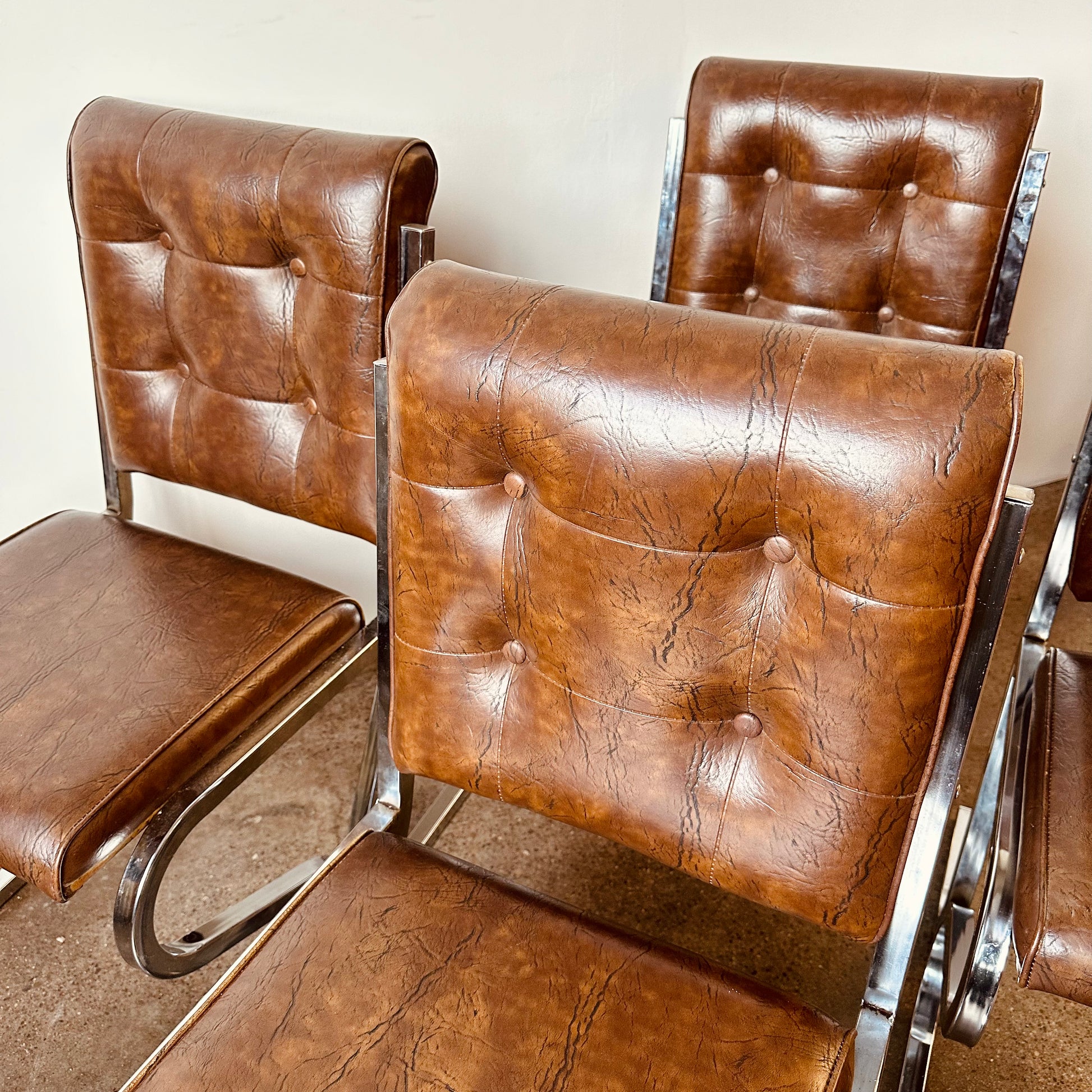 Mid-century vintage chrome, framed dinette chairs with original brown vinyl tufted upholstery -in great shape
