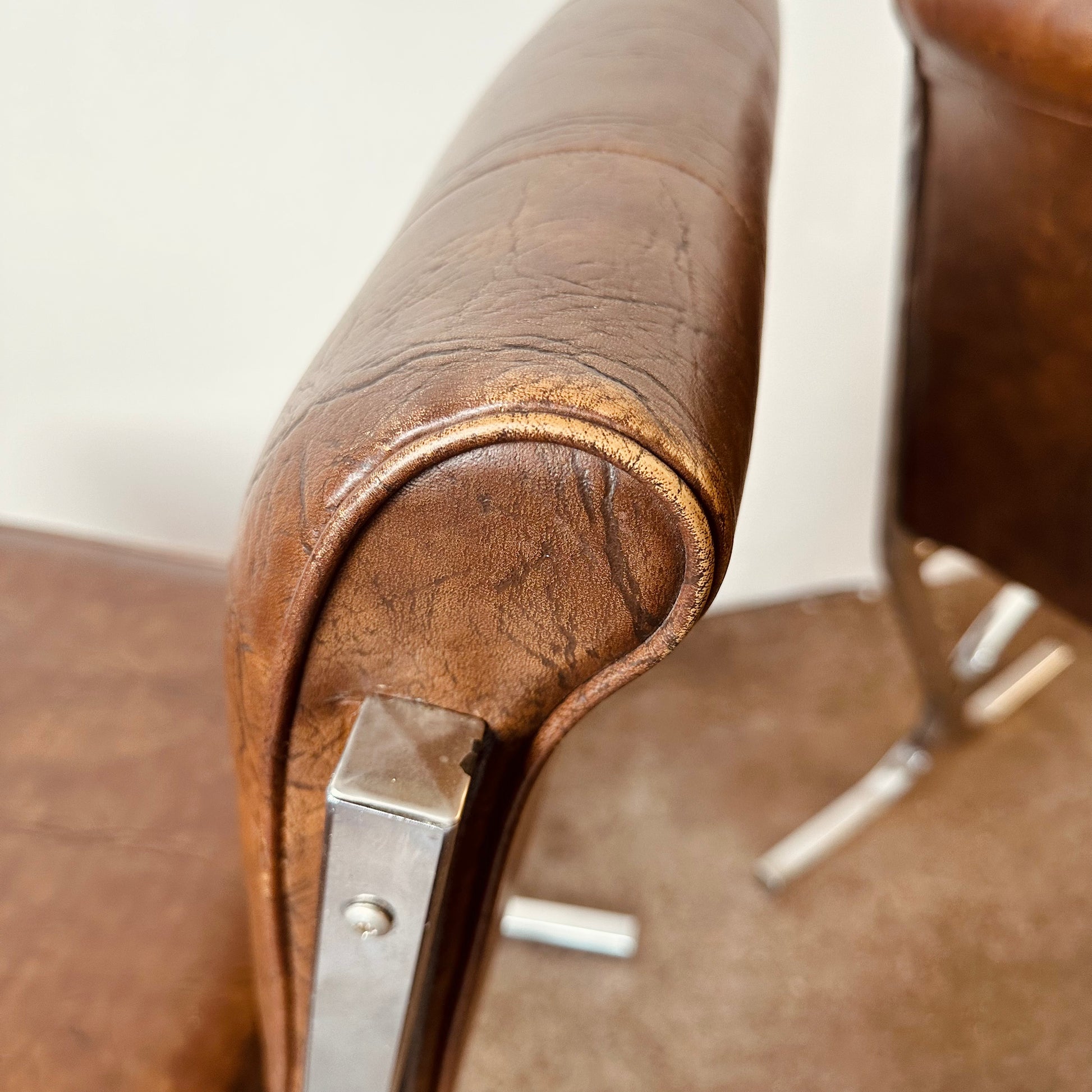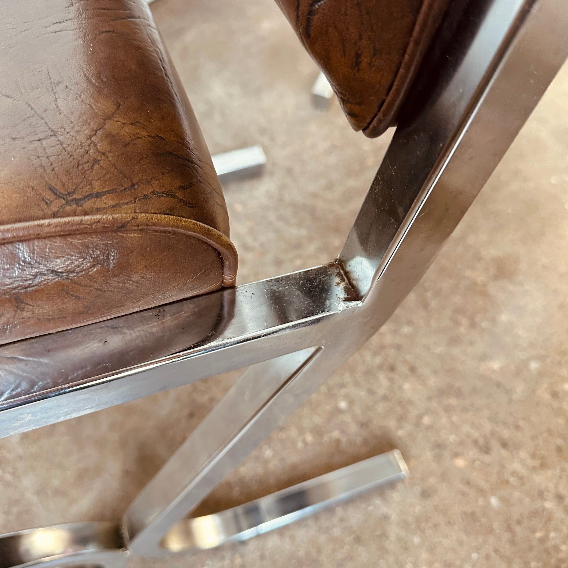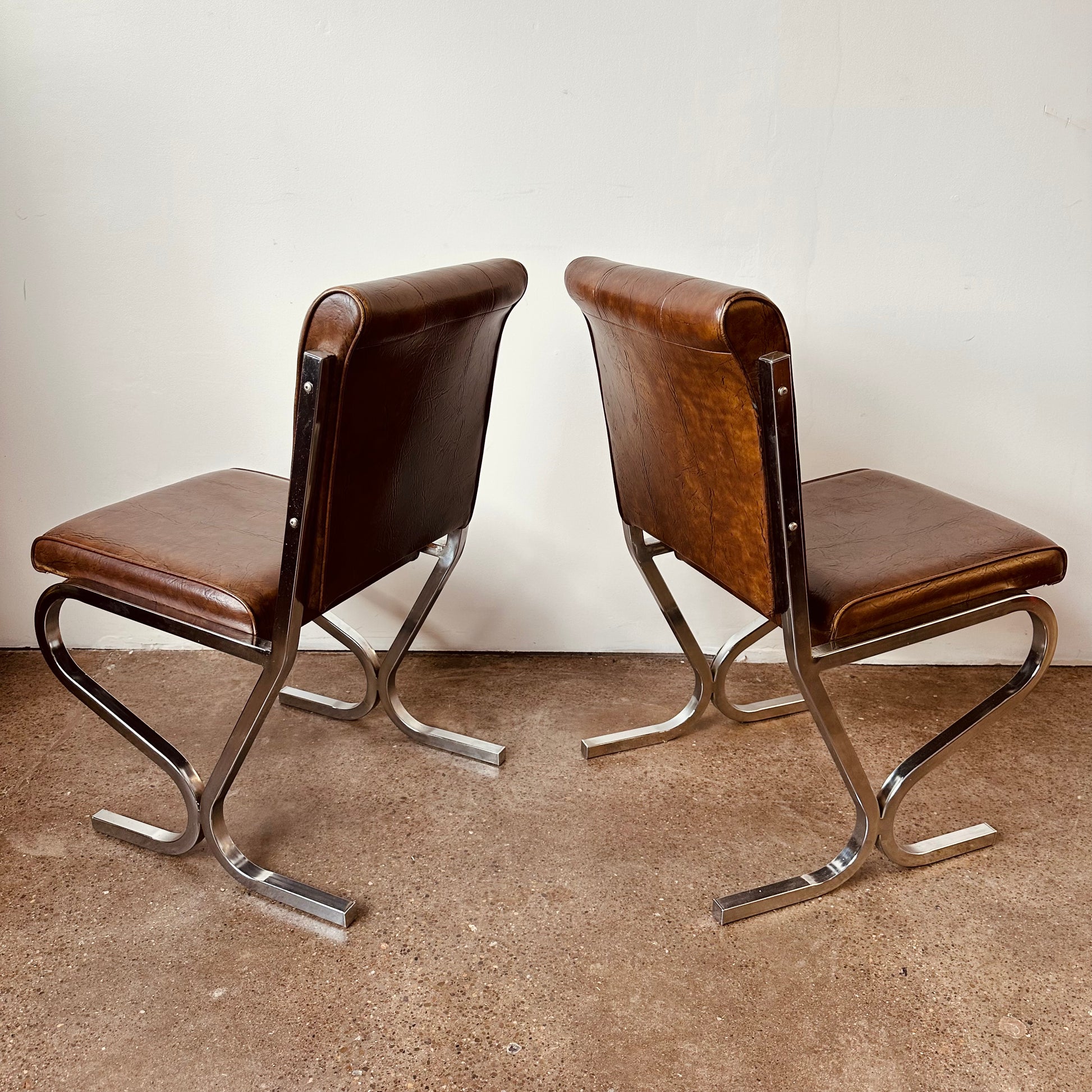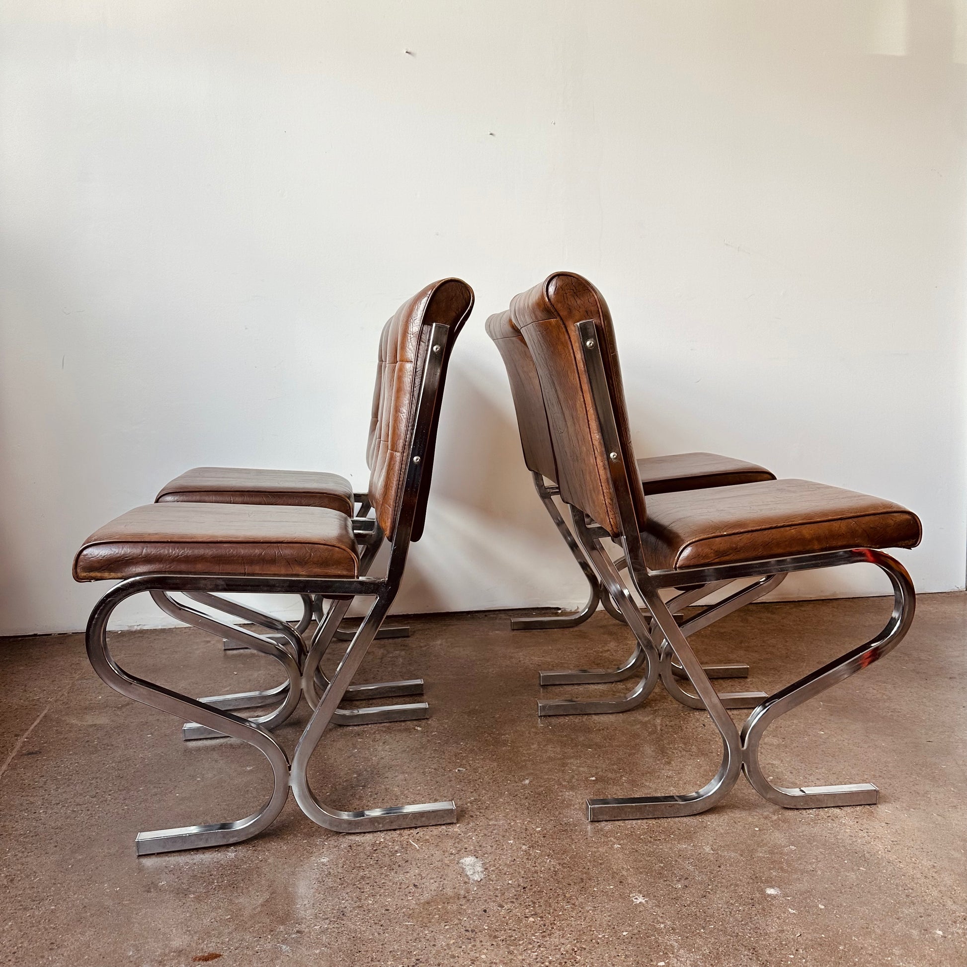 Mid-century vintage chrome, framed dinette chairs with original brown vinyl tufted upholstery -in great shape